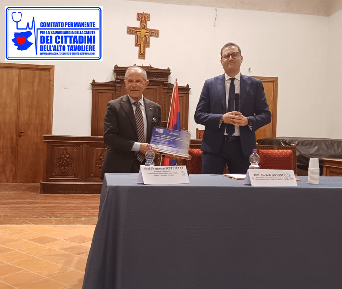 - Dal 2018 presiede il Comitato Salute dell’Alto Tavoliere della Puglia. Partendo da forti criticità sanitarie presenti nel suo territorio insieme ad un gruppo di associazioni presenti ha creato e presiede il Comitato permanente per la salvaguardia del diritto alla salute dei cittadini dell’Alto Tavoliere della Puglia. Dopo varie battaglie è stato ripristinato il servizio medico H24 al PPIT ( Punto di Primo Intervento Territoriale) a Torremaggiore dal 1/01/2019. ( leggi tutta la rassegna stampa a questo indirizzo ). Altre battaglie sono in corso di interessamento da parte del Comitato per dare maggiore risposte alle esigenze sanitarie del territorio. Il 22 marzo 2024 ha assegnato la Presidenza Onoraria del Comitato Salute dell’Alto Tavoliere della Puglia per i suoi meriti scientifici, umani e di monito pubblico per la prevenzione e la sensibilizzazione oncologica a vantaggio esclusivo dell’intera collettività al Prof. Francesco Schittulli;